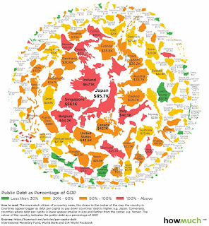 Os países mais endividados do mundo. Com a dívida mais elevada distingue-se o Japão que atingiu 229, 20. A mais baixa é a do Iémene.